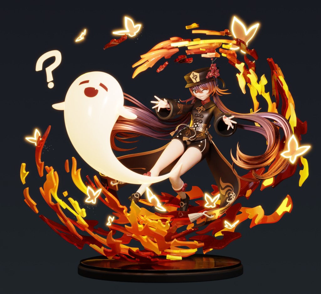 Hu Tao is a rare 5 star character from Genshin Impact. She is a pyro type who’s fiery spirit was amazingly captured by Pablo!