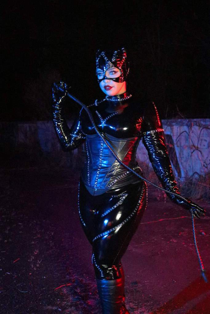 AllieCat’s Catwoman cosplay essentially replicates the jet black suit presented in the Batman Returns movie. If I didn’t know any better, I’d think it was from the movie itself!