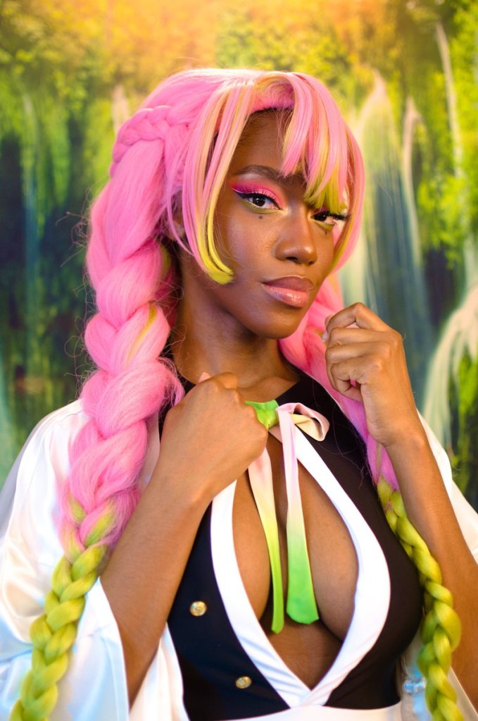 Just as important as the cosplay itself is the background, which was masterfully chosen to emphasize Mitsuri’s dynamic color scheme!